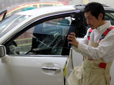 車のウインドガラスは、特に輸入車など一台一台ガラスに微妙なゆがみによる大きさの違いがあります。