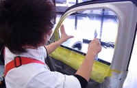 ホットカンパニーの作業スペースは完全密閉空間であることは勿論のこと、フィックスのガラス窓、アルミサッシの引き戸で万全を期してフィルム貼付作業を行っています。